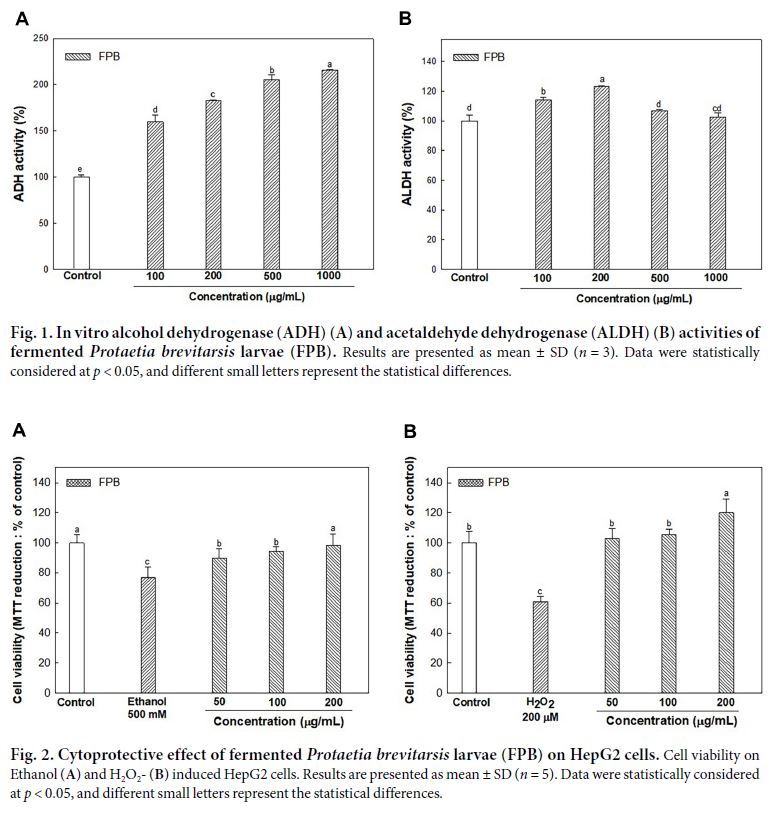 Fermented Protaetia brevitarsis Larvae ameliorates chronic ethanol-induced hepatotoxicity in mice… (SCI급, JMB 게재) (Journal of Microbiology and Biotechnology, 34(3), 2024)